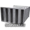 Пластинчатый шумоглушитель - коробка из тонкого листового металла, разделенная вдоль прохода воздуха пластинами, облицованными звукопоглощающим материалом. Для поглощения звука используют стекловату, войлок и т.п. Обычно пластинчатые шумоглушители применяют для больших воздуховодов. Расстояние между ячейками шумоглушителя - от 75 до 300 мм, причем с уменьшением ячеек снижается шум, но возрастают потери давления. Чтобы снизить потери давления от трения, звукопоглощающий материал подвергают противоабразивной обработке или покрывают тонким пластиком.